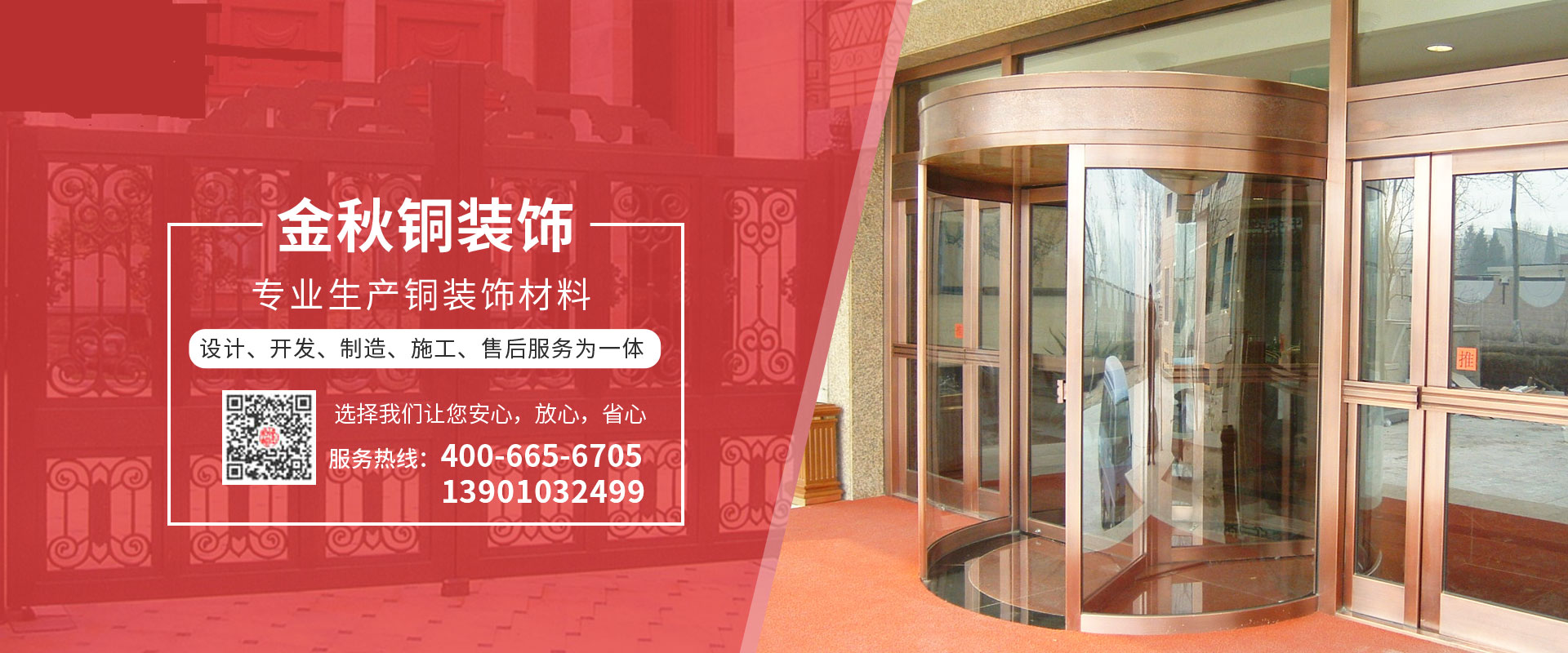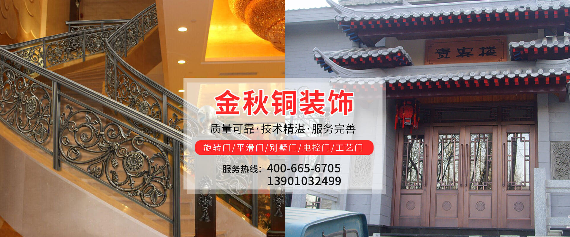 北京金秋銅裝飾材料有限公司是專業(yè)生產(chǎn)銅裝飾材料及設(shè)計(jì)、開(kāi)發(fā)、制造、施工、售后服務(wù)為一體的大型綜合企業(yè)。可承接建筑銅裝飾工程及五星級(jí)酒店、別墅、博物館、樓樘管所等高檔銅裝飾項(xiàng)目;生產(chǎn)各種規(guī)格的旋轉(zhuǎn)門(mén)、平滑門(mén)、別墅門(mén)、電控門(mén)、工藝門(mén)、旋轉(zhuǎn)護(hù)欄、屋頂銅飾防水瓦、浮雕壁畫(huà)......